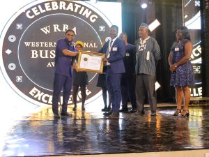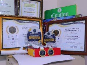 Nzema Manle Rural Bank PLC receives a double award for BEST GROWING RURAL BANK OF THE YEAR & CUSTOMER SERVICE RURAL BANK OF THE YEAR at the just ended WESTERN REGIONAL BUSINESS WARDS ’25 held at Akroma Plaza on the 20th of September 2025.